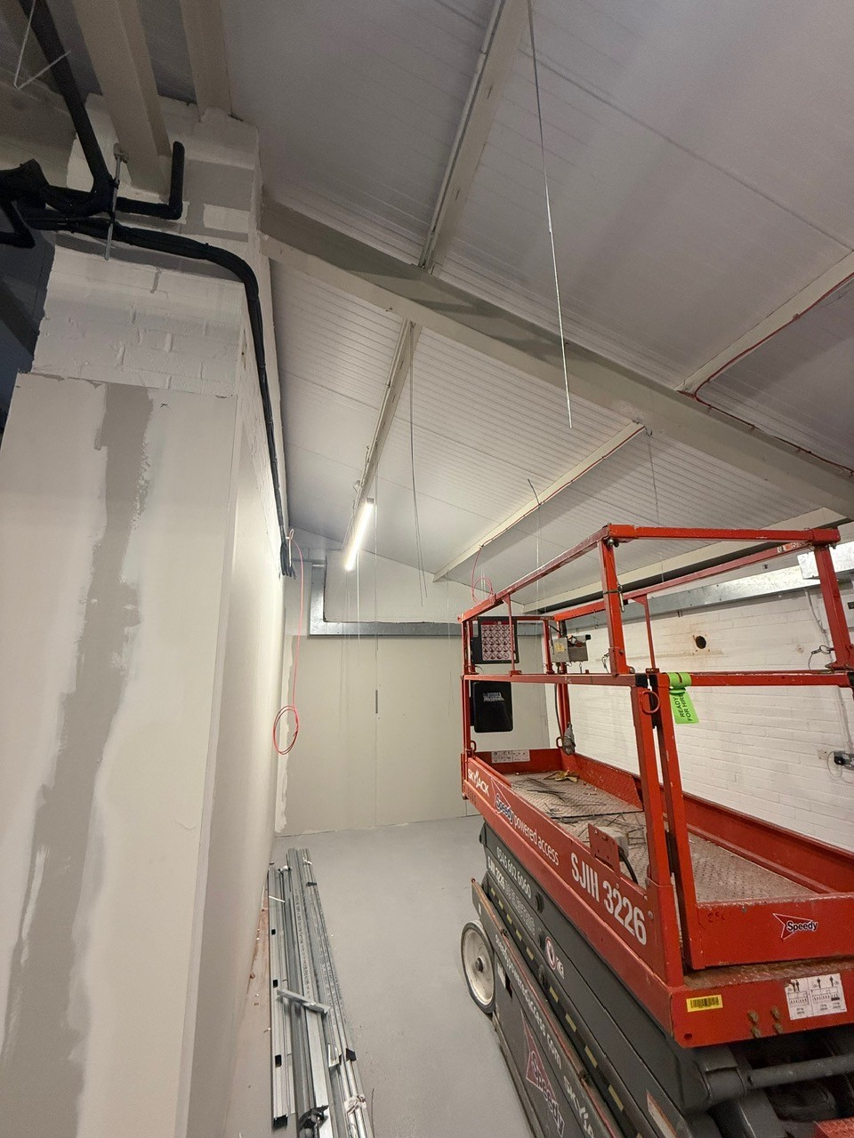 A new warehouse unit was acquired to accommodate the increasing demand for office space and enhanced storage facilities. The project began with a complete strip-out of the existing office areas, creating a blank canvas for redevelopment. A substantial jumbo partition wall was then constructed to divide the warehouse into two distinct operational zones, ensuring a clear separation between office and storage functions while maximising workflow efficiency.
