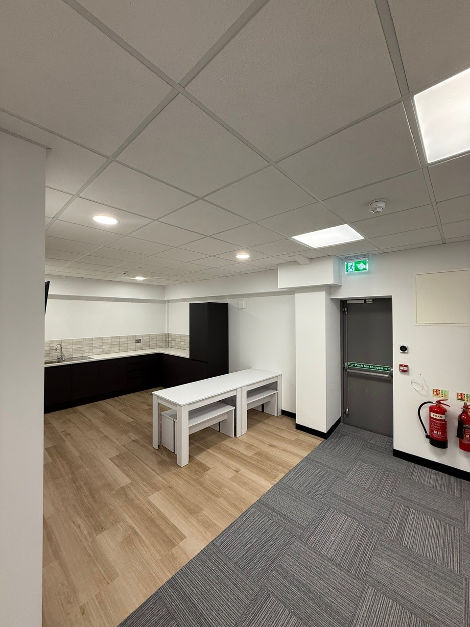The existing two-zone fire alarm system was carefully adapted and extended throughout the premises. This included the installation of additional smoke detectors and manual call points to suit the revised configuration. Upon completion, the system was fully tested and recommissioned to guarantee reliability and regulatory compliance.